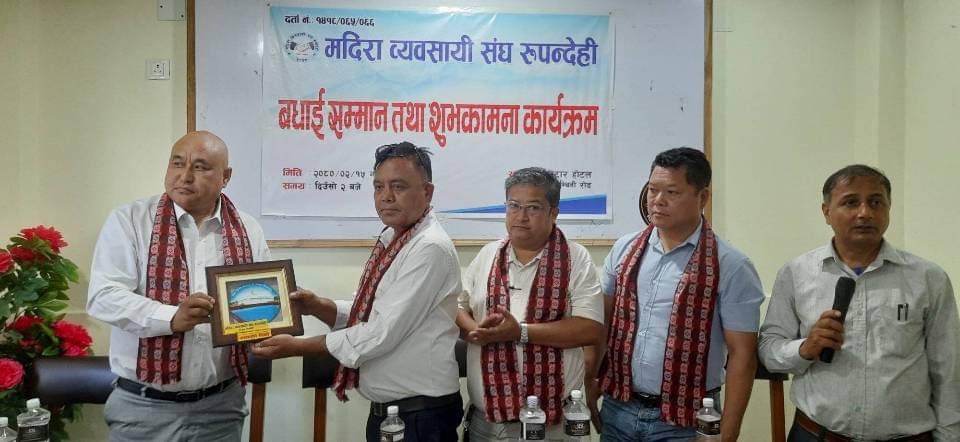 मदिरा व्यवसायी जिल्ला संघहरुले नेपाल मदिरा व्यवसायी महासंघमा निर्वाचित पदाधिकारहिरुलाई शुभकामना तथा सम्मान कार्यक्रमहरुको आयोजना गरेका छन । लुम्वीनी र गण्डकी प्रदेशका विभिन्न जिल्लाहरुले महासंघका नवनिर्वाचित पदाधिकारीहरुलाई शुभकामना तथा सम्मान कार्यक्रमको आयोजना गरेका हुन ।