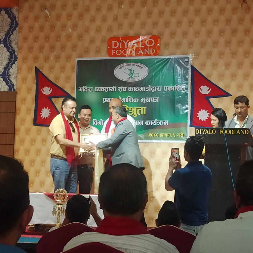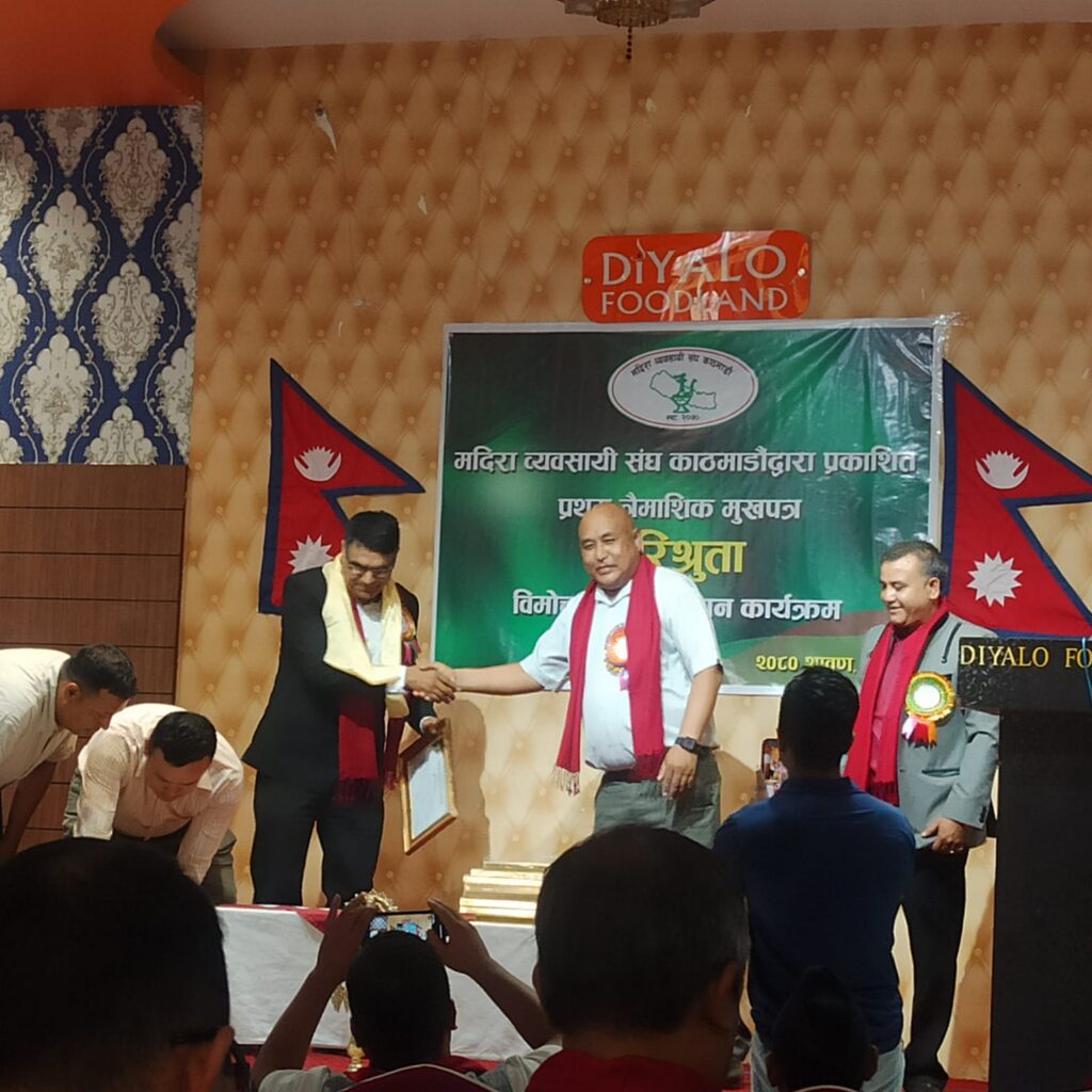 मदिरा व्यवसायी संघ काठमान्डौले सल्लाहकार तथा पदाधिकारीहरु मनोनित गरि प्रमान पत्र समेत वितरण गरेको छ । संघले शुक्रवार विषेश कार्यक्रमको आयोजना गरि कानुनी सल्लाहकार अधिवक्ता सुदिप नेपाल, अधिवक्ता दिनेश खड्का, सल्लाहकारहरुमा सल्लाहकार श्री मदन गौतम, रुपक अर्याल, राजकुमार श्रेष्ठ, हरि सिटौला, हेमन्त पसाई, सुवास प्रधान, साधुराम गौतम, अमिर विडारी नियुक्त गरि प्रमान पत्र प्रदान समेत गरेको छ ।